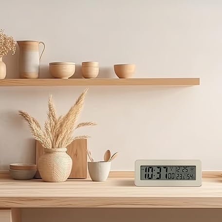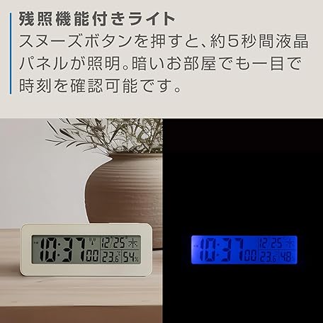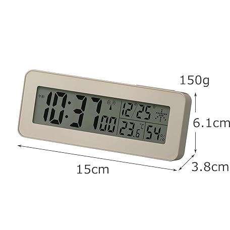 Thông tin sản phẩm RHYTHM 8RZ238ND38 Alarm Clock, Radio Clock, Digital, Electronic Sound, Alarm (with Snooze), Thermometer, Hygrometer, Light, Calendar, Stylish Gray Color, Beige, 2.4 x 5.9 x 1.5 inches (6.1 x 15 x 3.8