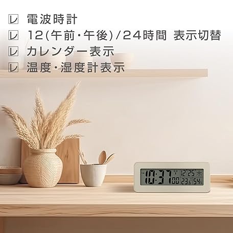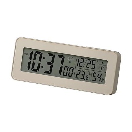 • RHYTHM 8RZ238ND38 Alarm Clock, Radio Clock, Digital, Electronic Sound, Alarm (with Snooze), Thermometer, Hygrometer, Light, Calendar, Stylish Gray Color, Beige, 2.4 x 5.9 x 1.5 inches (6.1 x 15 x 3.8