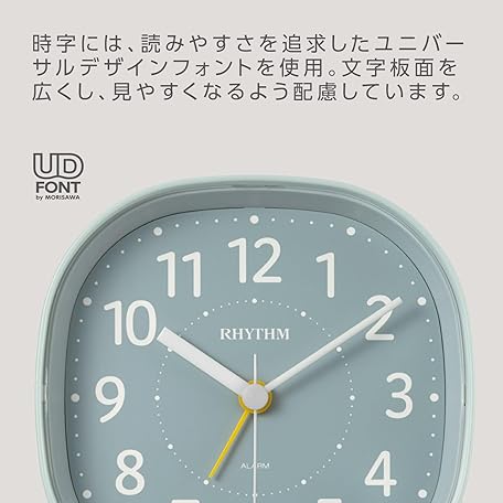 RHYTHM Alarm Clock, Analog, Electronic Sound, Alarm (with Snooze), Quiet, Continuous Second Hand, Universal Design, Font Light, Blue, 4.1 x 4.0 x 2.2 inches (10.4 x 10.1 x 5.7 cm), Reflex R674