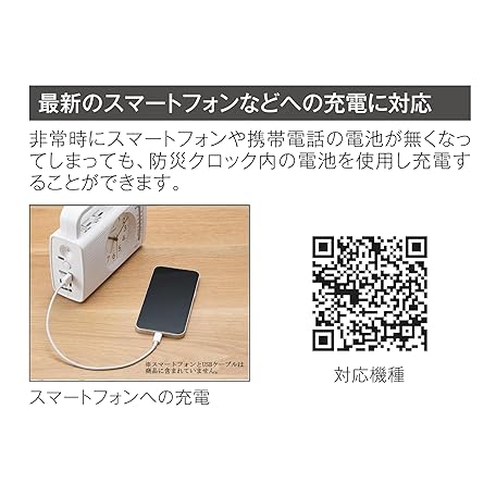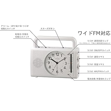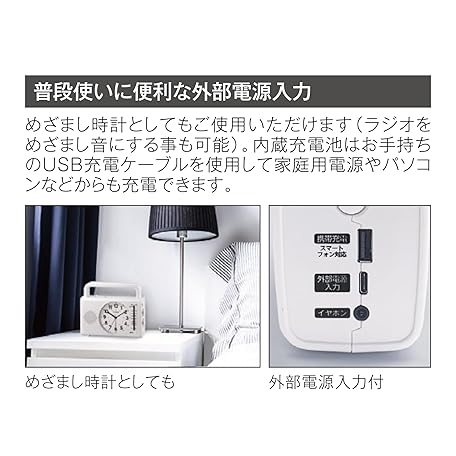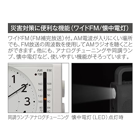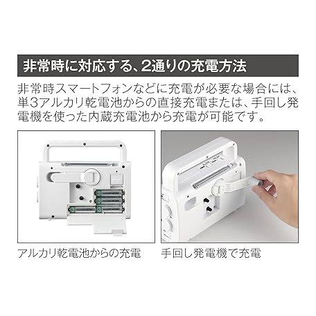 Thông tin sản phẩm RHYTHM Citizen 4RQ002-003 Alarm Clock, Disaster Prevention Clock, AM/FM Radio (Wide FM Compatible), Hand Crank Power Generation, LED, Flashlight, Smartphone, Mobile Phone, Charging Function, Analog,