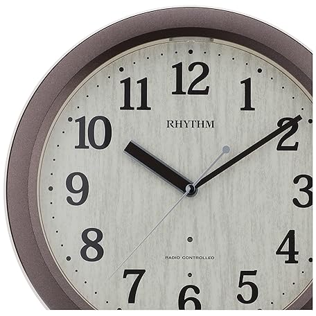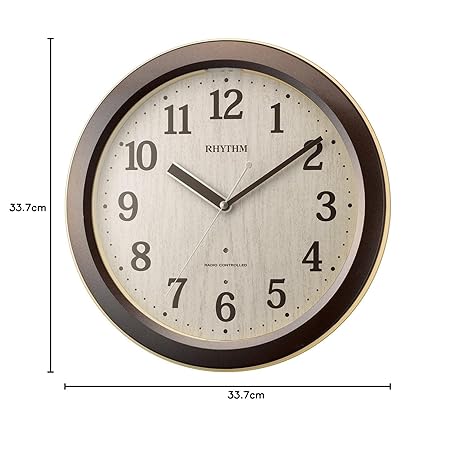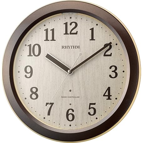 • リズム(RHYTHM) 掛け時計 電波時計 アナログ 暗所 ライト 自動 点灯 茶 (木目仕上) ピュアライトM33 4MYA33SR06