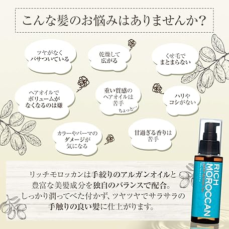 Thương hiệu RICH MOROCCAN là cái tên nổi tiếng được rất nhiều khách hàng trên thế giới chọn lựa. Với kiểu dáng đẹp mắt, sang trọng, sản phẩm Rich Moroccan Hair Repair Oil, 2.8 fl oz (80 ml) / Approx. 3 Months Supply, Argan Oil (Made in Japan) Outbath Hair Oil là sự lựa chọn hoàn hảo nếu bạn đang tìm mua một món cho riêng mình.