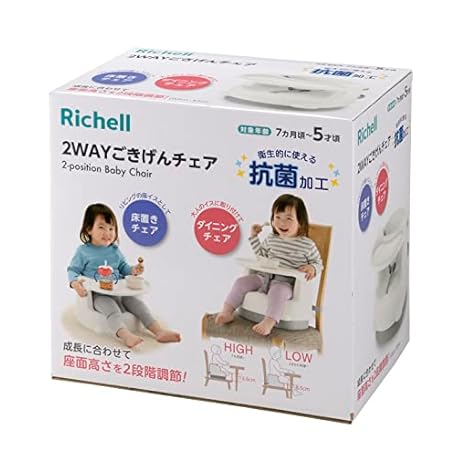 Thông tin sản phẩm Richell 2-Way Gokigen Chair, White, Antibacterial Specifications, 7 Months to 5 Years Old