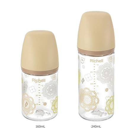 Thông tin sản phẩm Richell Jointly Developed by Professor of Dentistry and Pediatric Dentists, Plastic Milk Bottle, 5.3 fl oz (160 ml), Outing Milk Bottle, Flower Lace, Newborn to 3 Months