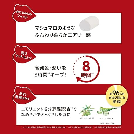 Mặt hàng này hiện nay đang có các phân loại 001 ジューシーオレンジ, 002 ウォームレッド, 003 リンメルレッド, 004 クリアルビー, 005 レッドテラコッタ, 006 ソフトピンクベージュ, 007 ローステッドブラウン, 008 ガーベラピンク, 009 レディピンク, 010 モーヴパープル, 011 ディープバーガンディ, cho bạn nhiều sự lựa chọn phù hợp với cá tính và sở thích riêng của mình. Dự kiến hàng sẽ về đến Việt Nam từ 01-01-1970 đến 01-01-1970 nếu quý khách thực hiện thanh toán trong hôm nay.
