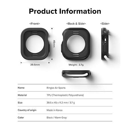 Thông tin sản phẩm Ringke Apple Watch 10, 1.7 inches (42 mm) Case, AIR SPORTS TPU, Anti-Yellowing, Shockproof, Shock Absorption, Protective Case, Lightweight Case, Apple Watch 10, 42mm, Smart Watch, Slim Case - Black
