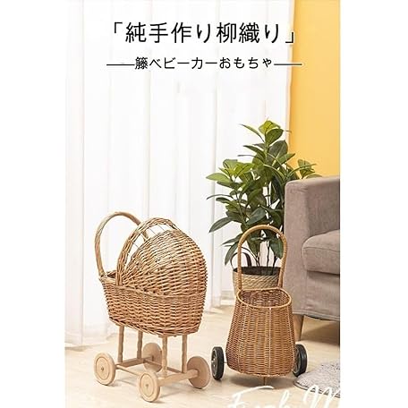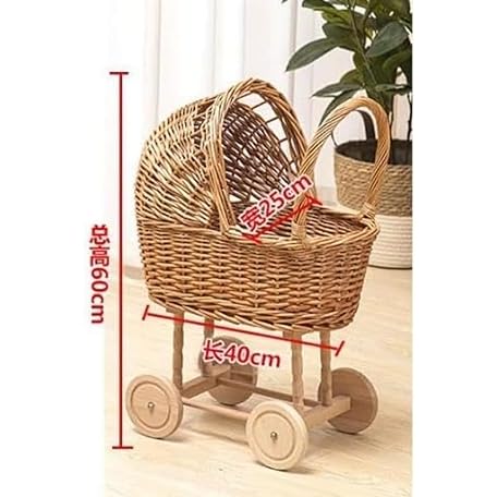 Riuuyyi Wheelbarrow Stroller Natural Willow Toy Kids Play Rattan Retro Stroller Toy Stroller