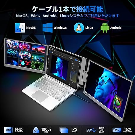 Sản phẩm ROADOM デュアルモニター 14インチ モバイルトリプルモニター Type-C ケーブル1本接続/USB2.0から拡張対応 11.6~15.6インチノートパソコン用 3画面 360°回転 アルミ合金製 折りたたみ式 デュアルディスプレイ FHD1080P IPSパネル Win/Mac/Android対応【X90A】 đang được bán với giá ưu đãi là $283.0839 tại nước Nhật.