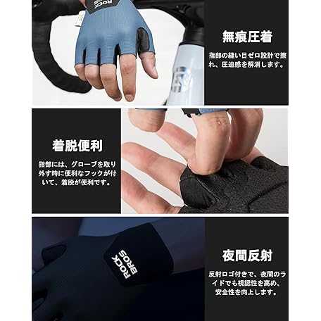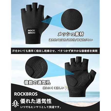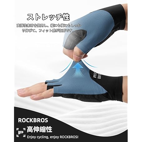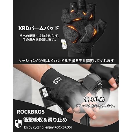 • ROCKBROS サイクルグローブ 夏 サイクリンググローブ 自転車 手袋 XRDパッド 衝撃吸収 指切り 通気性 伸縮性 耐磨耗 滑り止め 超軽量 ロードバイク サイクリング アウトドア メンズ レディース