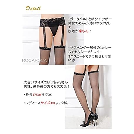 Thông tin sản phẩm Rokaloka Large Size Garter Belt Net Tights, One-Piece Garter Stockings, For Men, Cosplay, Nurse Made, Gothic Loli, Costume (Black)