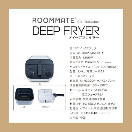 Sản phẩm ROOMMATE DEEP FRYER ディープフライヤー EB-RM6400A đang được bán với giá ưu đãi là $102.6671 tại nước Nhật.