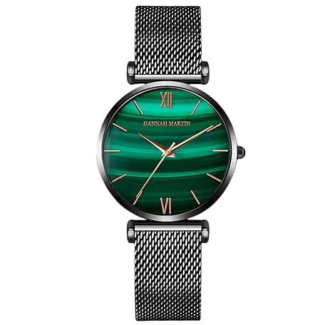 RORIOS Women's Wristwatch, Made in Japan, Quartz, Malachite, Peacock Stone, Green Dial, Waterproof, Analog, Casual, Stainless Steel, Leather Band, Stylish, For Work or School Commutes, black (mesh