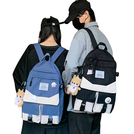 ノーブランド品 Rucksack, Backpack, Unisex, Men's, Canvas, High School Students, Middle School Students, Campus Backpack, School Commute, Simple, Casual, Two-Tone Color