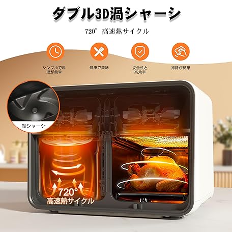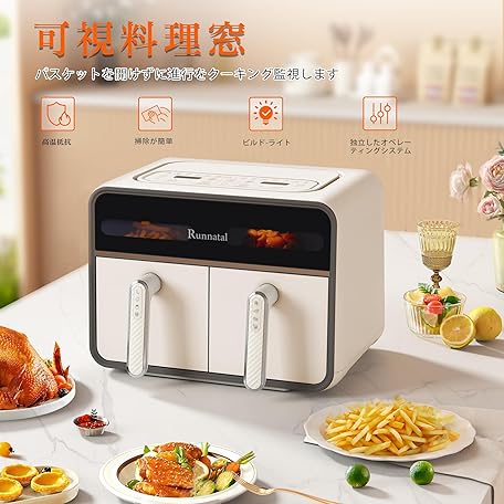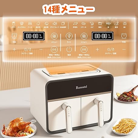 Thông tin sản phẩm Runnatal Non-Fryer 8L Large Capacity Electric Air Fryer for 1-8 People, Visible Window, Touch Panel, Home Use, 2 Independent Fry Baskets, 14 Cooking Methods, PSE Certified