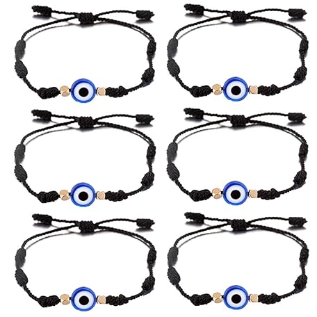 • SAELACY ハンドメイド ノット レッド ブラック イーブルアイ ブレスレット 保護と幸運 調節可能 カバラ 友情 ストリングブレスレット レディース メンズ ティーン 6本, 宝石なし。