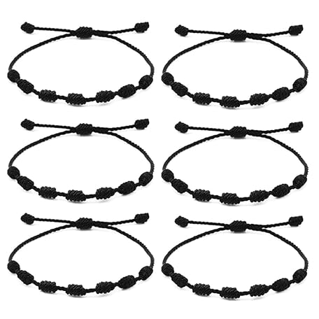 SAELACY Handmade Knot Red Black Evil Eye Bracelet Protection and Good Luck Adjustable Kabbalah Friendship String Bracelets for Women Men Teens 6 Pieces, No Jewels