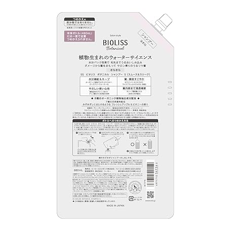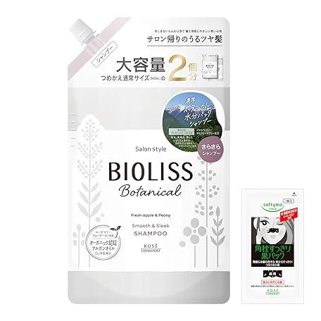 • SALON STYLE KOSE Biolis Botanical Shampoo (Smooth & Sleek) Refill, Large Capacity, 24.0 fl oz (680 ml) (2 Regular Sizes) Bonus Included