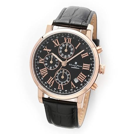 Salvatore Marra Wristwatch SM22103-PGBK Waterproof Date Display Leather Strap Waterproof Men's Watch, PGBK