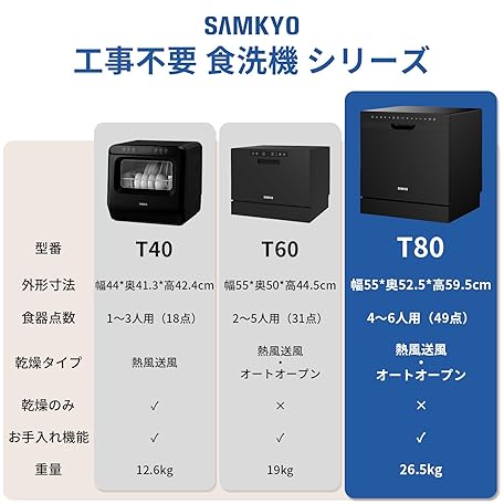 Sản phẩm SAMKYO 食洗機 工事不要 4~6人用 49点入り大容量 食器洗い乾燥機 食洗器家庭用 食器洗浄機 熱風送風・オートオープン乾燥 T80 ブラック đang được bán với giá ưu đãi là $464.0893 tại nước Nhật.