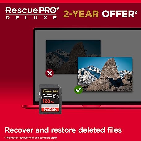 Thông tin sản phẩm SanDisk 128GB Extreme PRO SDXC Card, SD Card, V60 Memory Card, 6K & 4K UHD, Up to 280MB/s Shock, Temperature, Water, X-Ray Protection, RescuePro Deluxe Data Recovery Software, UHS-II, Class 10, U3