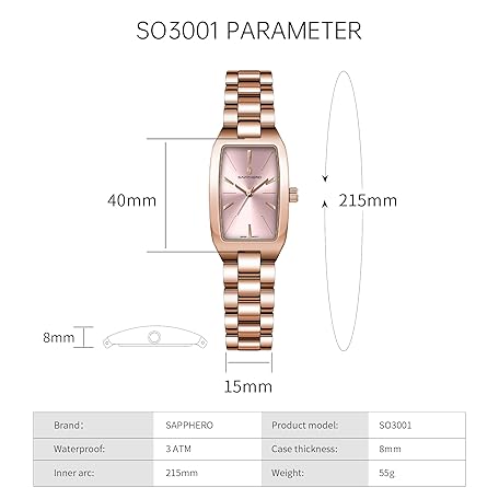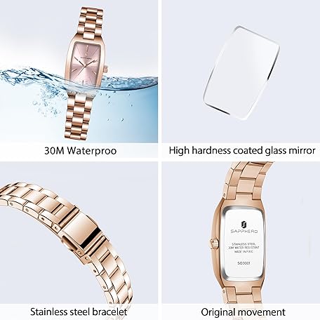 Thông tin sản phẩm SAPPHERO Watches for Women Luxury Women Watches Women Bracelet Watch Small Stainless Steel Analog 3ATM Waterproof Wrist Watches for Women, Rose Gold Strap / Pink Face, Bracelet Type