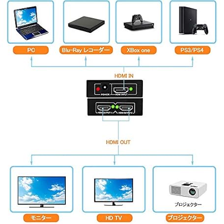 Sapphire HDMI Splitter 1 Input 2 Output 2 Screen Simultaneous Output 4K*2K @30Hz 3D PC Xbox PS4 Switch Fire TV Stick Projector