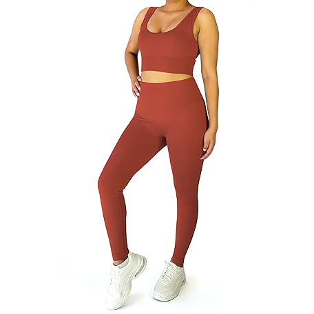• SARDONIX SRDX Women's 2 Piece Seamless Workout Outfit Activewear Tops Gym Yoga Leggings Set, rust
