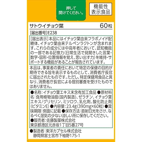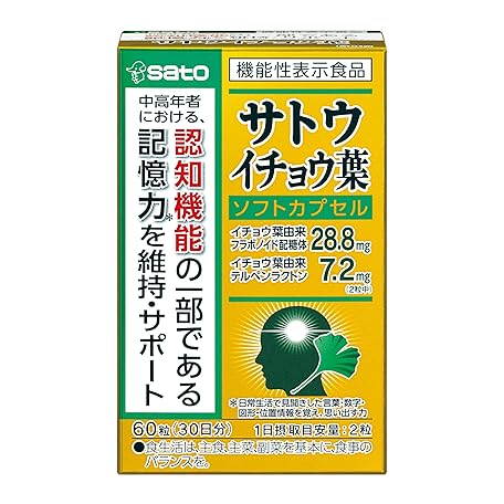 Thông tin sản phẩm Sato Pharmaceutical Sugar Ginkgo Biloba Soft Capsule, 30 Day Supply, 60 Tablets (Food with Functional Claims)