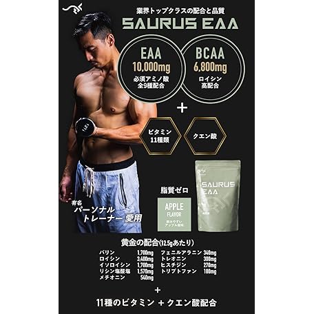 Thương hiệu AMINO\アミノサウルス\SAURUS là cái tên nổi tiếng được rất nhiều khách hàng trên thế giới chọn lựa. Với kiểu dáng đẹp mắt, sang trọng, sản phẩm SAURUS(サウルス) EAA 必須アミノ酸 高含有率(80%)アップル味 500g 11種類のビタミンとクエン酸配合 国産 là sự lựa chọn hoàn hảo nếu bạn đang tìm mua một món cho riêng mình.