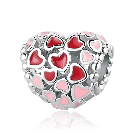 • SBI ジュエリー レッドピンク ハートチャーム ブレスレット用 ラブハート ビーズチャーム 女性/女の子/母親/誕生日のギフトに