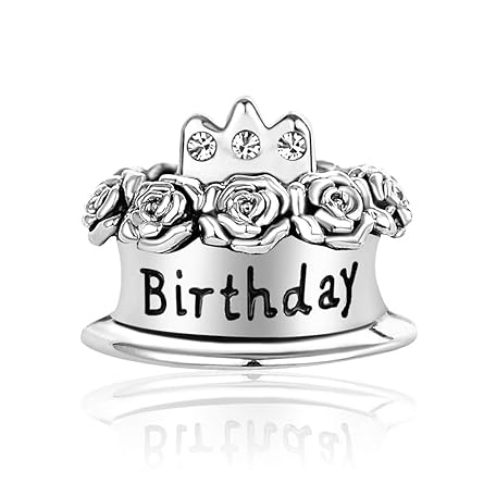 • SBI Jewelry レディース ハッピーバースデーチャーム ブレスレット用 クリスタル誕生石ビーズ ローズフラワー ケーキチャーム 彼女へのギフトに