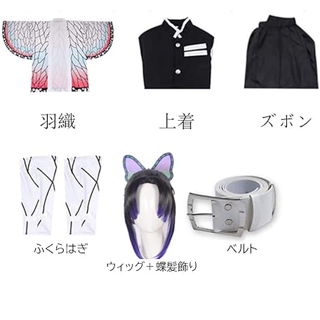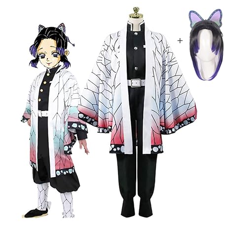 S&C Live 7 Piece Kokyo Shinobu Cosplay Costume Set with Hair Ornament, Butterfly Feather Haori Costume, Butterfly Shinobu Cosplay, Kokyo Shinobu Costume, Kuchin Shinobu Costume, Devil Blade Cosplay