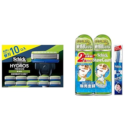 Schick Hydro 5 Premium Sensitive Skin Replacement Blades (10 Pieces) for Shaving and Razors (Amazon.co.jp Exclusive) + Medicated Shave Guard Double Pack Men's Green Shaving Foam Bonus Set 7.1 oz (200