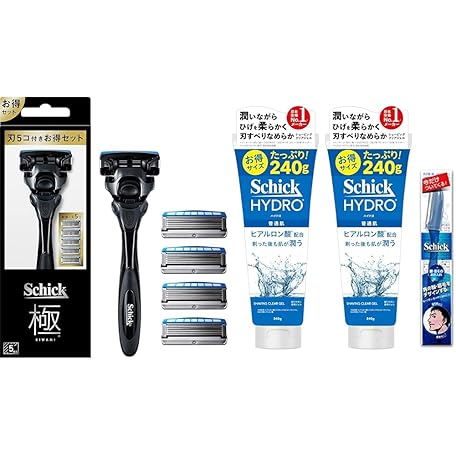 Schick Ultra KIWAMI Combo Pack (Holder (with Blade) + 4 Replacement Blades), Razor + Hydro Shaving Gel Set, 8.5 oz (240 g) (x2)