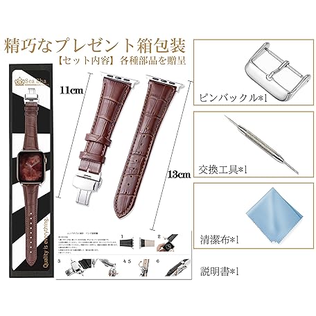 • [Sea Sha] Compatible Apple Watch Band 1.7 inches (44 mm), 1.8 inches (45 mm), 1.8 inches (46 mm), 1.9 inches (49 mm), Genuine Leather, For Business, Push Type D Buckle/Pin Buckle, Handmade Apple Watch