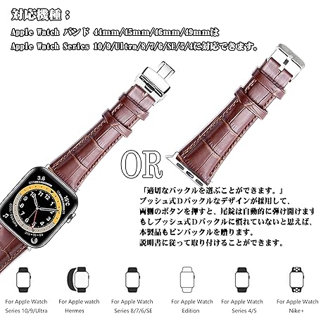 Thông tin sản phẩm [Sea Sha] Compatible Apple Watch Band 1.7 inches (44 mm), 1.8 inches (45 mm), 1.8 inches (46 mm), 1.9 inches (49 mm), Genuine Leather, For Business, Push Type D Buckle/Pin Buckle, Handmade Apple Watch