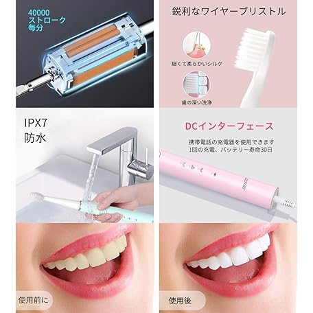 Sản phẩm Seago 電動歯ブラシ 音波歯ブラシ 歯ブラシ電動大人と子供のためのソニック、充電式歯ブラシ スマート タイマー、IPX7級防水、5 つのモードと 4 時間充電最後の 30 日間口腔ケア ガム クリーン ホワイトニング歯ブラシ - 白い (White) (Pink) đang được bán với giá ưu đãi là $32.9289 tại nước Nhật.