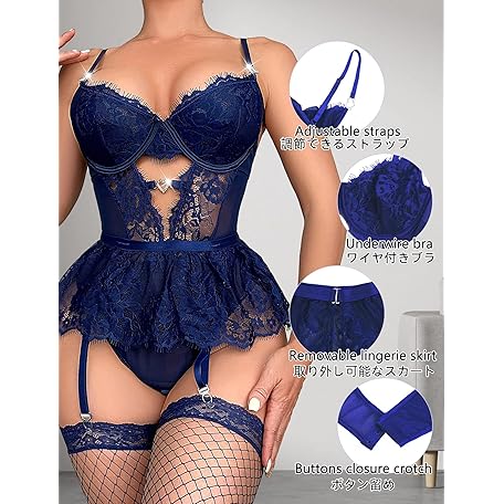 [SEAUR] ボディスーツ テディ セクシー ランジェリー 取り外し可能なスカート 下着 レース レオタード レディース ベビードール メッシュ 透け インナー 勝負下着 女性 下着