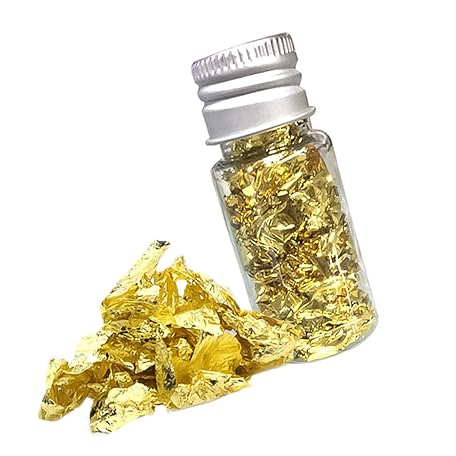 SECFOU 1 Decorative Gold Foil Paper Leaf Flake Liner Gold Paper Nail Decoration Nail Art Double Can Foil Liquid Glitter Golden Doodle O