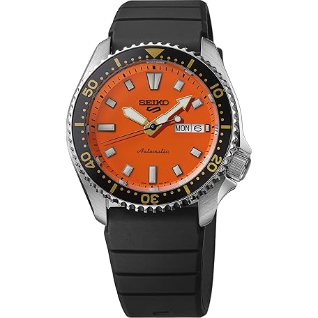 Seiko 5 Sport Men's Automatic Watch with Stainless Steel Case and Luminous Hands - Stylish Watch, black orange, Seiko 5 Sports