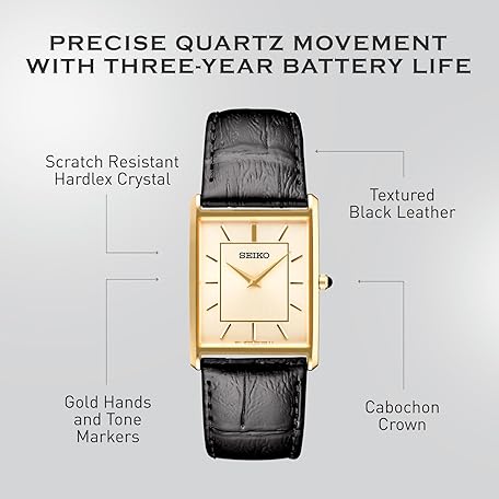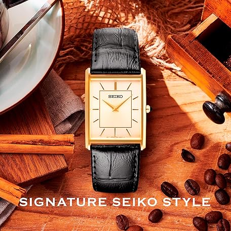 Seiko Men's Essential Watch - Essential - Waterproof Stainless Steel Rectangle Case and Leather Strap, white - SWR052, Must have