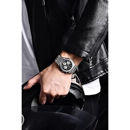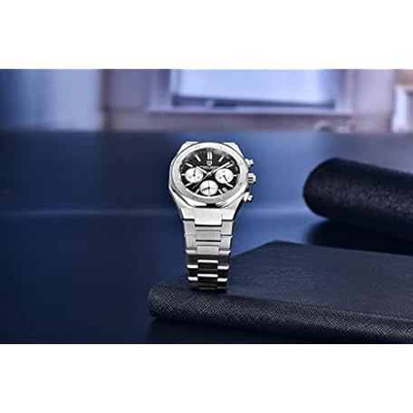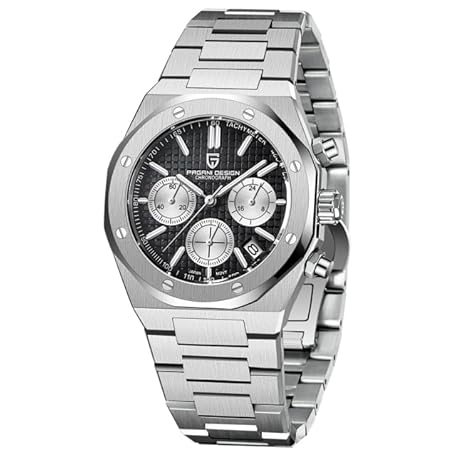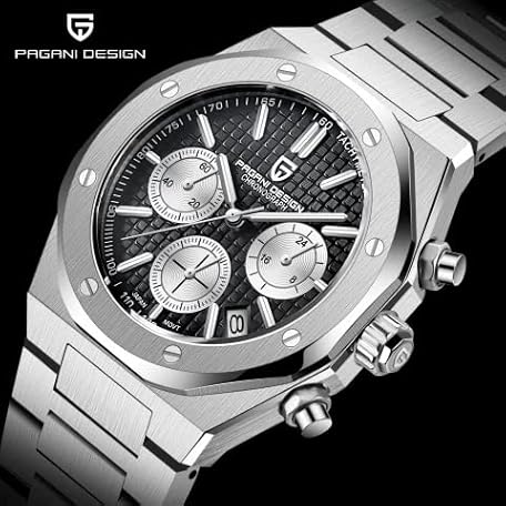 パガ-ニデザイン メンズ腕時計 日本製 SEIKO クォーツムーブメント オフショア クロノグラフ ケース 付き 防水 ビジネス 仕事用 ドレスウォッチ ステンレススチール 革 ベルト サファイアガラス 結婚式 パーティー 成人式 記念日 プレゼント PAGANI DESIGN PD-1707 (ブラック)