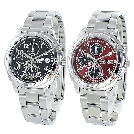 Seiko snd195psnd495pc Wristwatch, Pair Watch, Storage Box, Men's, Women's, Unisex, Waterproof,, black red, Bracelet Type