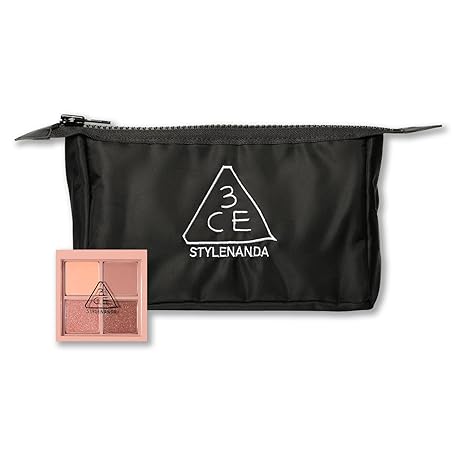 [Set] 3CE Mini Multi-Eye Color Palette D Side by Side + 3CE Pouch Small Black Cosmetic Pouch Travel Pouch