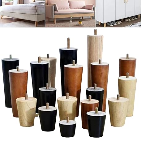 Set of 4 Wooden Table Legs Casters/Fixed Legs Furniture Legs Sofa Legs Furniture Parts Legs Table Legs Taper Sofa/Bed/Cabinet Legs Wood Height 5cm-60cm M6/M8/M10 Standard, DIY Replacement Legs Solid