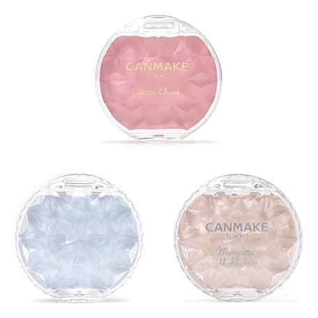 [Set Purchase] Canmake Cream Cheek 23 Cupid Pink Cheek Glossy Bloody Feel Adhesive White Pink + Smooth Highlighter 04 Blue Topaz 0.1 oz (3.8 g) Raw Rare Highlighter Sarara Blue + Cream Flexible