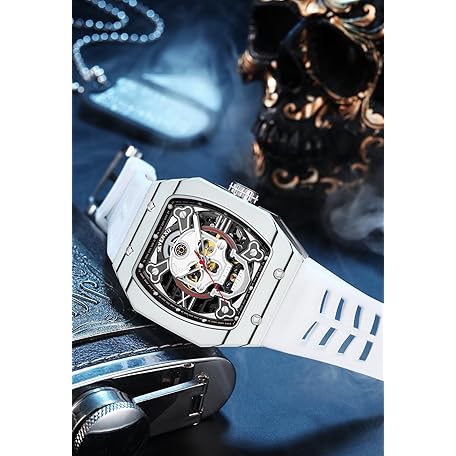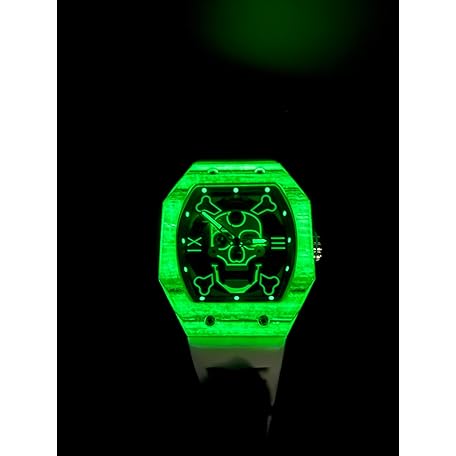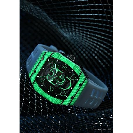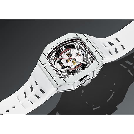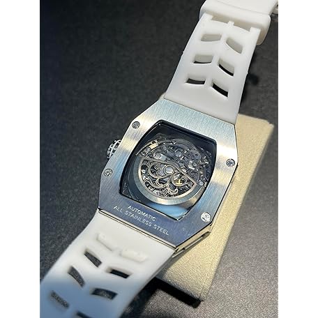 Thông tin sản phẩm SEVEN XII Men's Mechanical Automatic Skeleton Watch, Carbon Fiber Case, Barrel Shape, Tonneau Shape, Luminous Dial, Waterproof, Luxury, Popular, white, Bracelet Type