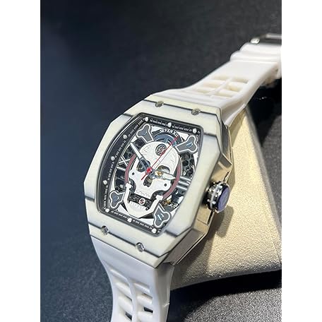 Sản phẩm SEVEN XII Men's Mechanical Automatic Skeleton Watch, Carbon Fiber Case, Barrel Shape, Tonneau Shape, Luminous Dial, Waterproof, Luxury, Popular, white, Bracelet Type đang được bán với giá ưu đãi là $262.5701 tại nước Nhật.