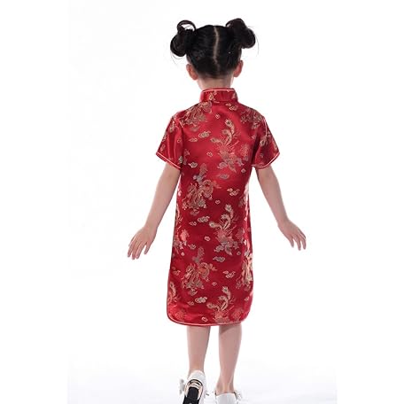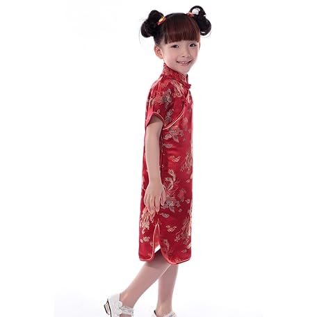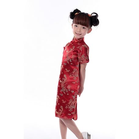 Thông tin sản phẩm Shanghai Story Girl’s China Dress, Dragon Pattern, Floral, Short Sleeve, Chinese Clothing, Red, Kindergarten, Games