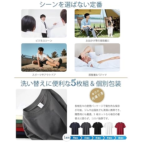 Thông tin sản phẩm SHOREKEEPER Inner Shirt, Set of 5, 100% Combed Cotton, T-Shirt, Short Sleeve, Loose Fit, Soft Underwear, Round Neck, Antibacterial, Odor Resistant, Solid, Quick Drying, Breathable, Multiple Colors